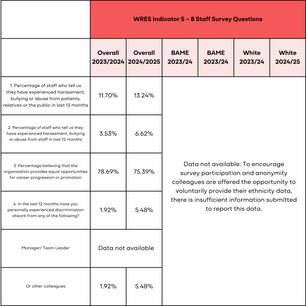 The WRES information in this report is based on the NHS WRES format, using data that is available at the time of reporting.