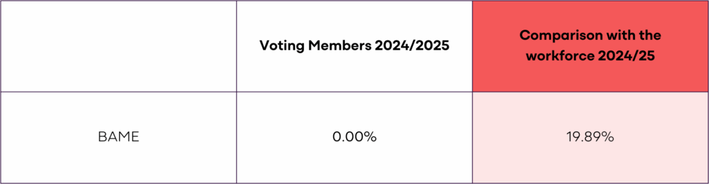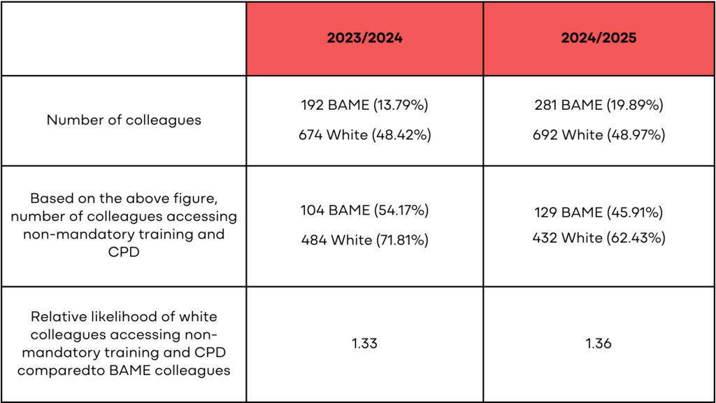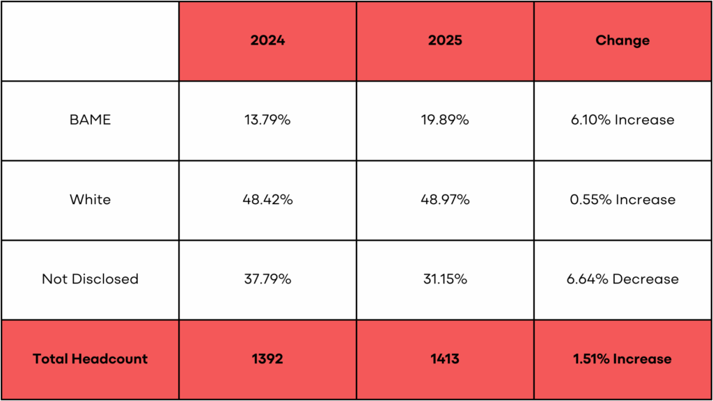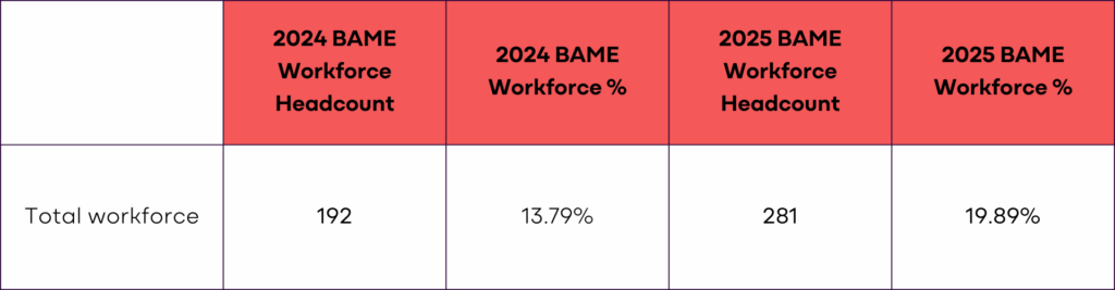 Table 1: Comparison of BAME colleagues 31st March 2024 and 31st March 2025